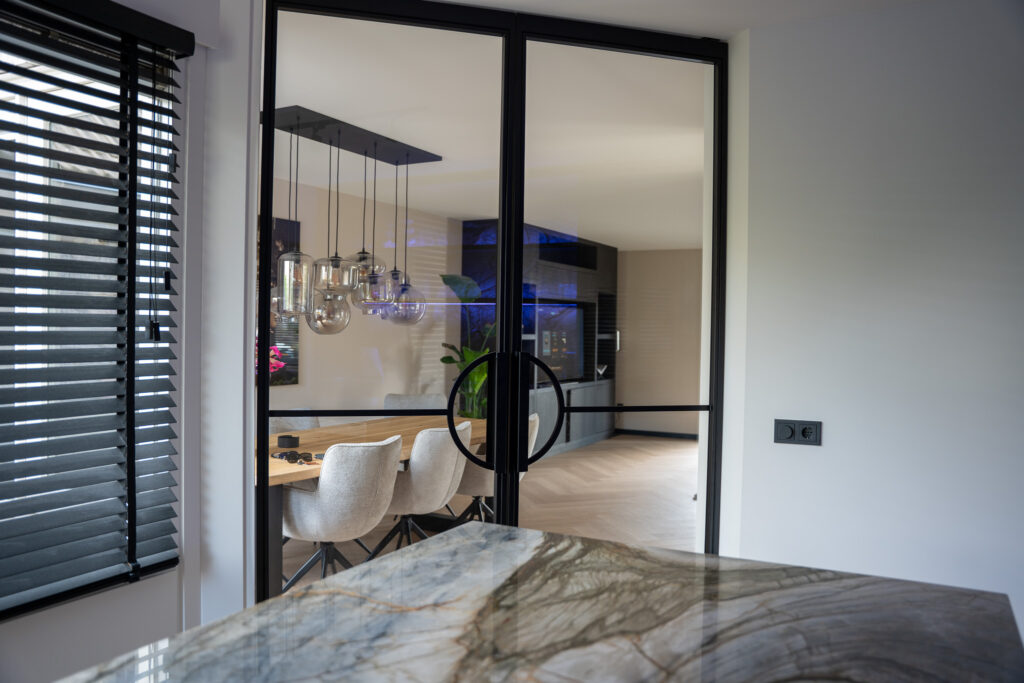 Alle deuren zijn uitgevoerd in hoogwaardig staal, gecombineerd met een duurzame zwarte coating. Deze afwerking biedt niet alleen een moderne industriële uitstraling, maar beschermt het staal ook jarenlang tegen slijtage. De slanke profielen zorgen voor maximale lichtinval, waardoor ruimtes groter, lichter en meer verbonden aanvoelen.